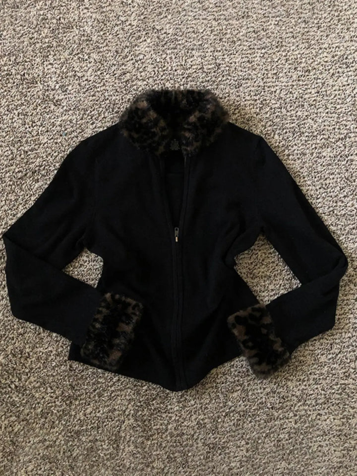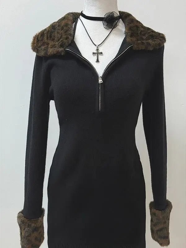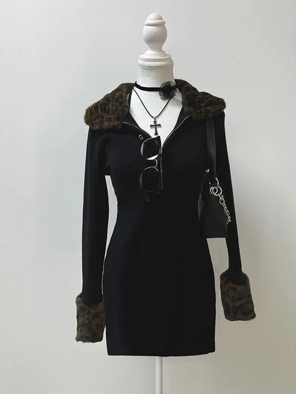Black leopard print coat dress