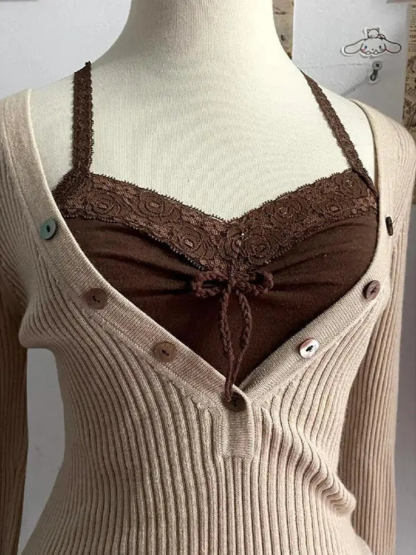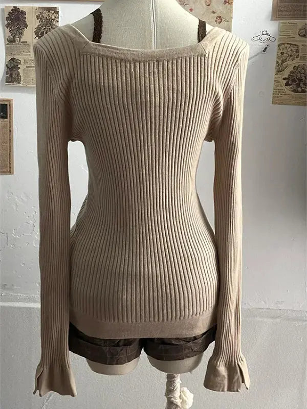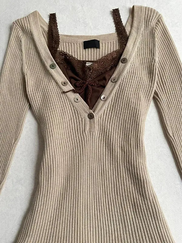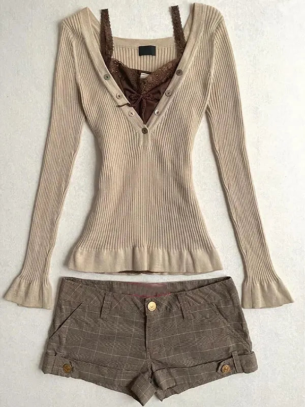 Khaki V-neck sweater