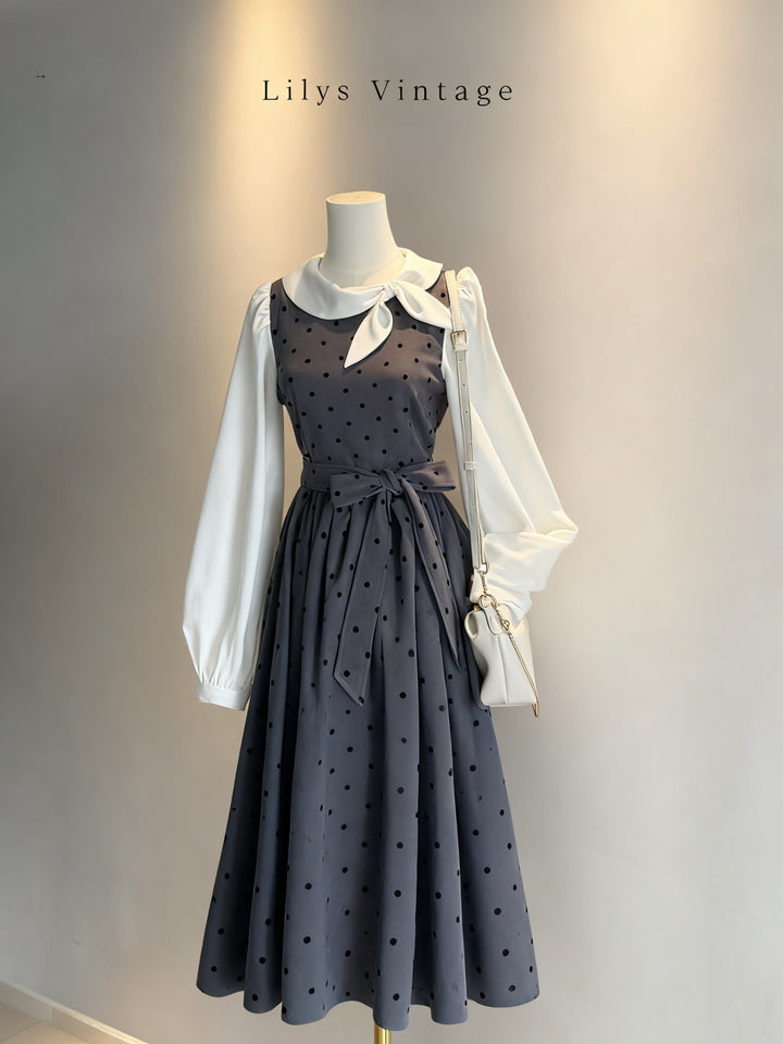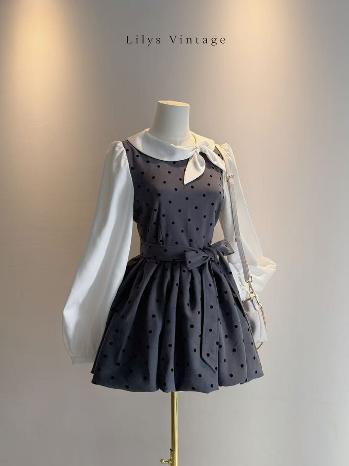 Long-sleeved retro-style polka dot tulip dress