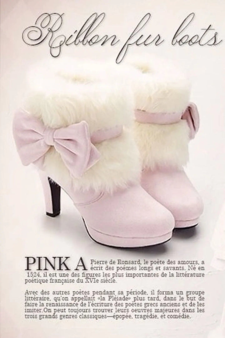 • Design Highlights: Fluffy faux fur collar, buckle strap, and oversized bow decorated with pearl accents for a sweet-meets-elegant style